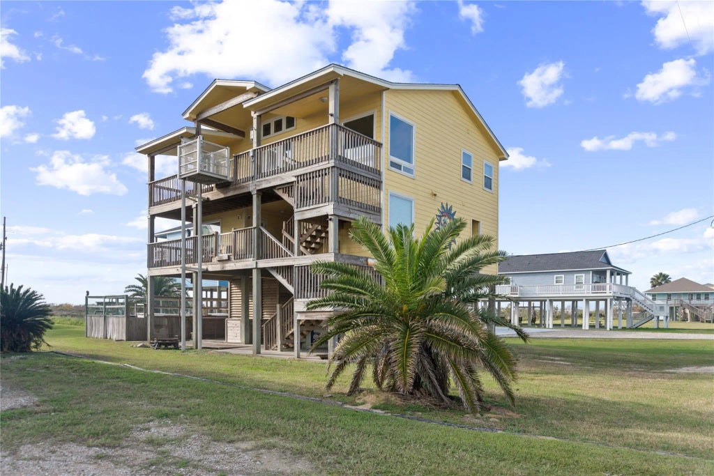 Just a 30 second walk to direct beach access! Amazing beach views with an awesome multi-level bedroom set up! The 1st floor consists of 2 completely separate bedroom suites, each with its own bath. Stackable laundry closet, 2 stg rooms! PLUS an amazing tiki bar for afternoon cocktails & grilling! Upstairs you'll find the primary bedroom that has its own private balcony with hot tub, gorgeous double vanity, soaking tub, separate shower, office/closet & stackable laundry! The main living area located on 2nd floor is completely open - gorgeous kitchen with propane range, large island, coffee bar area, plenty of cabinets, spacious dining area, pantry closet & beautiful living area with exposed beams & glorious beach views! And this is just the inside! Downstairs you'll drive into a double wide drive, garage for storage, plenty of room to entertain PLUS an above ground pool with deck when you're just ready to cool off! There is even a cargo lift to do all of your heavy loads! Come see!