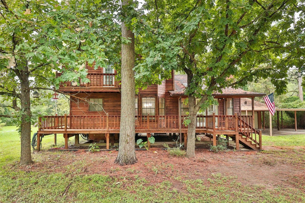This beautifully remodeled home on approx. 1 acre in a private cul-de-sac w/ no through traffic offers both space & seclusion. A brand-new septic system ensures peace of mind, while the whole-house water softener & reverse osmosis system provide top-tier water quality. The home’s freshly refinished & stained exterior is complemented by a wraparound deck on the first floor, & the third-floor primary suite boasts its own private deck. Inside, enjoy fresh paint throughout, including walls, trim, doors & kitchen cabinets, along w/ new fans & carpets. The first-floor living room is bathed in natural light from skylights & features a cozy wood-burning fireplace. The second floor houses secondary bedrooms & a game room for additional space. Outside, a detached garage, extended 4-car carport & chicken coop complete the property. Roof replaced in 2011, an 18 SEER variable speed heat pump, city water & septic tank. NOT in a flood zone. Plus, enjoy LOW taxes at only 1.7%! 3D Tour Available!