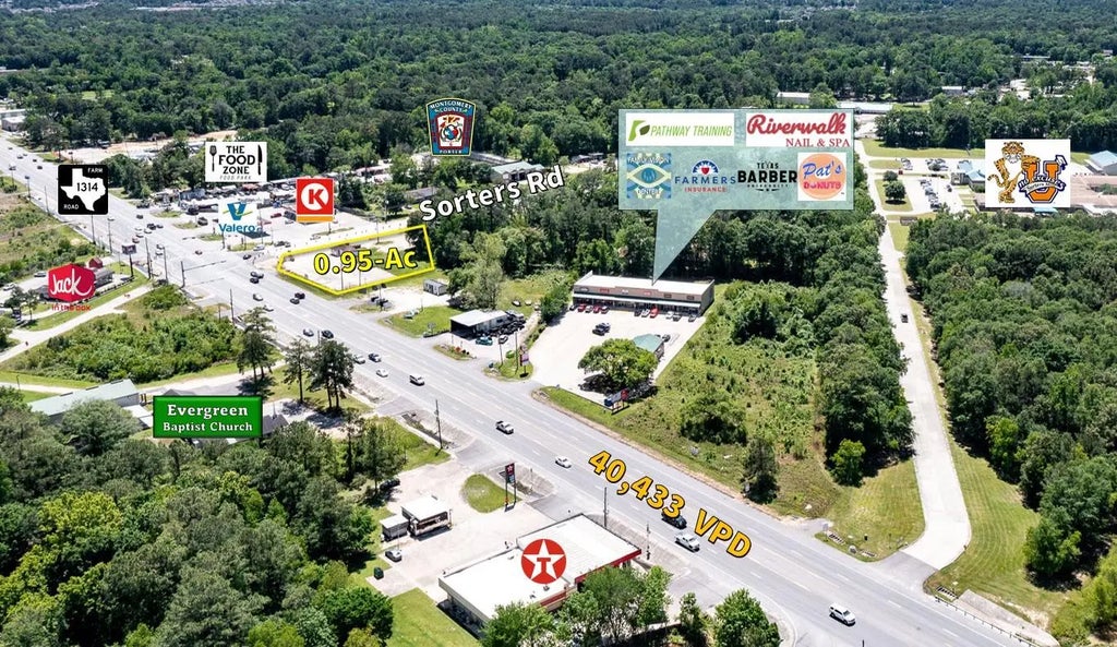 Excellent corner lot situated at the SWC of high traffic FM 1314 & Sorters Rd, this location would be ideal for commercial development, Valley Ranch Town Center & Grand Pkwy (Hwy 99) – 3 miles Easy access to I-69 (Hwy 59) & Hwy 99 (Grand Pkwy) Houston & IAH Bush Airport – 30 Min