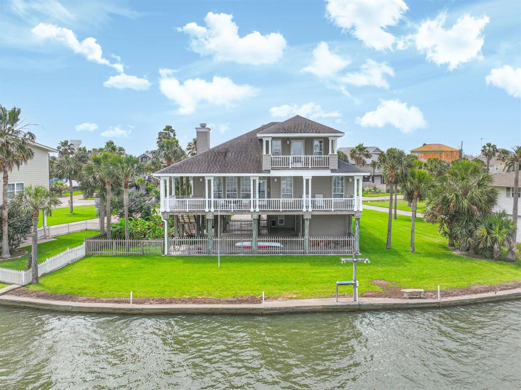 Absolutely STUNNING 1-owner waterfront masterpiece showcases endless sweeping views!!! Rare location affording approximately 102 ft of waterfrontage looking down the Jamaica Beach main canal. This home with ELEVATOR boasts wide open entertaining spaces looking out to the water from several windows. The Chef's kitchen features granite counters, Island gas cooktop with vent hood, large pantry, and cabinetry in abundance. Enjoy the famous Galveston sunset while relaxing on the spacious main deck. Primary retreat features nice canal views, spacious closets, and nice walk-in shower. Ground level entertaining mecca offers multiple gathering spaces, garage space for two cars tandem, access to the elevator without being exposed to the weather, fresh interior and exterior paint. Homes in these locations rarely come on the market so schedule your showing today and make this beautiful home yours!!!