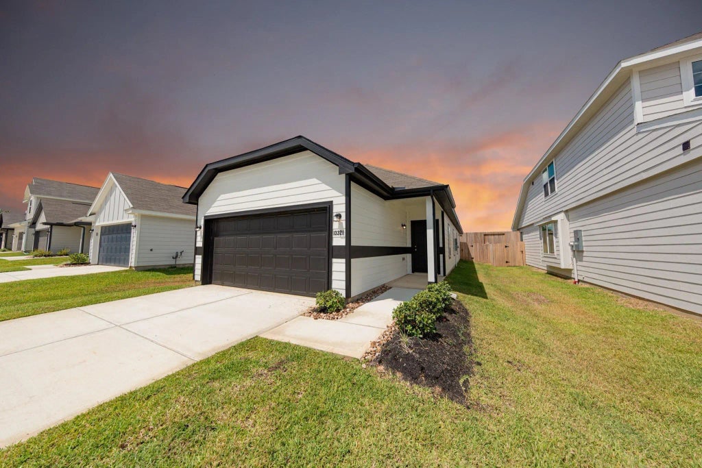 River's Edge is a coveted new construction community near The Woodlands in Conroe, Texas. The Newcastle plan is a 1-story home that comes standard with 3 bedrooms, 2 baths, and includes abundant counter space in the kitchen, a pantry, large primary walk-in closet, and spacious laundry room. Upgrades include - Sod front and back,
