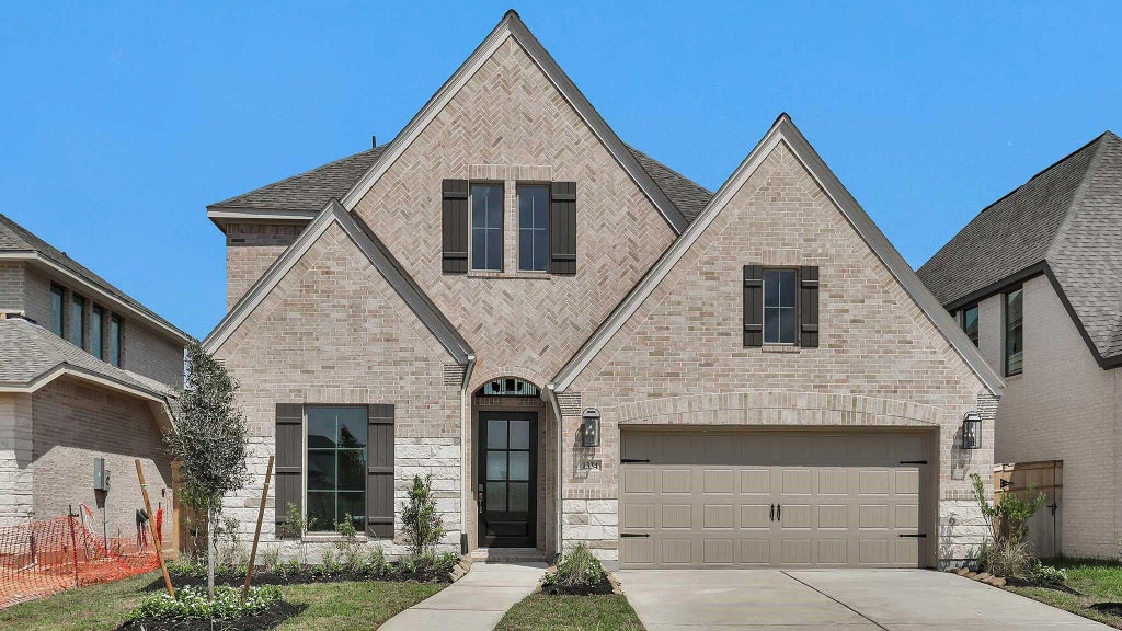 Home office with French doors and formal dining room set at two-story entry. Kitchen and morning area open to two-story family room with wall of windows. Kitchen features corner walk-in pantry, 5-burner gas cooktop and generous island with built-in seating space. First-floor primary suite. Dual vanity, freestanding tub, separate glass-enclosed shower and large walk-in closet in primary bath. A second bedroom is downstairs. Upstairs features a game room and two secondary bedrooms. Extended covered backyard patio. Mud room off two-car garage.