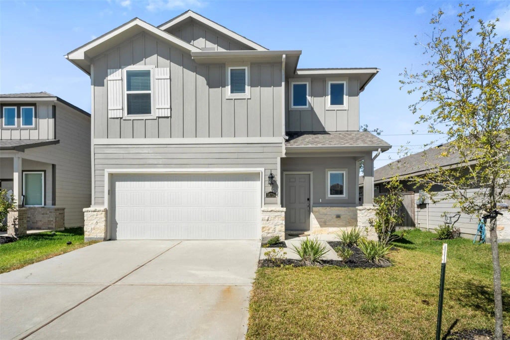 Welcome to this BRAND NEW never lived in rental! It comes complete with all the appliances necessary and move in ready for you! Large foyer with tall ceilings, half bath downstairs, double car garage with controllers for easy access into the home. Complete with Alarm system and cameras for safety. In the kitchen you'll find a large island with room for barstools, pantry, big laundry room and living space perfect for all your entertaining needs. Primary bedroom is down with double vanity, soaking tub, shower and walk in closet. Upstairs you'll find a spacious game room with three additional bedrooms all with ceiling fans and large closets. The upstairs bath features additional storage and double vanities for all your guests needs. Come check out this beautiful rental today!