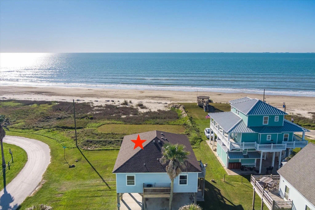 This charming BEACHFRONT home offers stunning Gulf views from its spacious living area, is priced to sell and comes furnished. Situated in Ramada Beach, this 2 bed, 2 bath cabin sits on 2 lots, providing ample space for relaxation. The primary bedroom boasts en suite bath with granite counter and tub/shower combo, while the second bedroom accommodates a queen bed and bunks. The kitchen features granite countertops and plenty of storage. A utility room leads to a cargo lift for convenience. Perfect for watching the sunrise, listening to the waves and embracing beach life. Don't miss out on this gem!