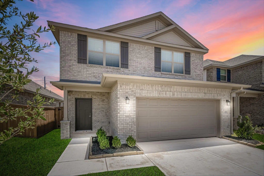 Welcome to the Family Retreat, floor plan 1915A. Elegance awaits in this exquisite 2-story, 4-bedroom, 2.5-bath new construction home. With a generous 1915 sqft, this residence is in highly sought after Dickinson ISD, where you can savor the tranquil lake from your own covered back patio. Step inside and be greeted by tall ceilings that amplify the sense of space. Crown molding w high 5 1/2-inch baseboards adorn the interiors, Rockfort style 5-panel interior doors & a touch of charm & showcasing attention to detail. The heart of this home is the architecturally designed kitchen. Granite countertops complement the stainless-steel kitchen appliances, creating a stylish and functional space. The large 42"x36" shower and garden tub in the primary bath offer a serene escape, while the double sinks in both primary and secondary baths ensure convenience. The VLP floors in family room, kitchen, dining areas, baths, and utility room combine aesthetics with easy maintenance.