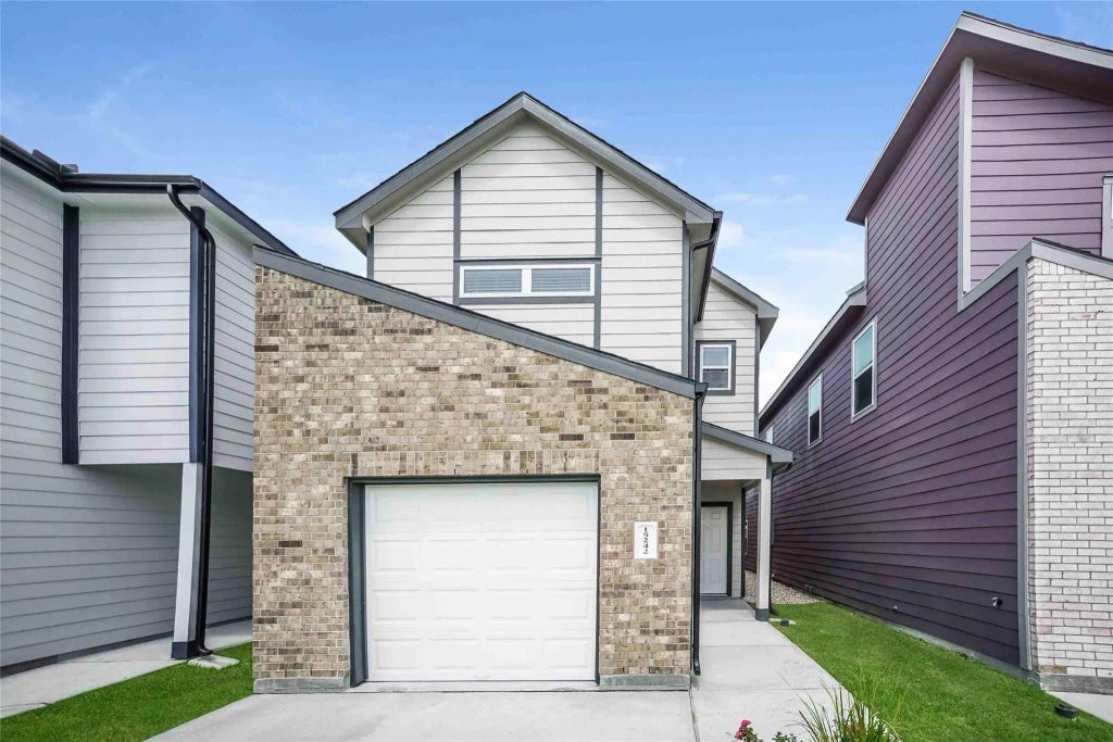 The Aura is a modern two-story home featuring 2 bedrooms and 2.5 bathrooms. On the first floor, you’ll find a spacious mudroom just off the one-car garage, a powder room near the entry, and an open-concept kitchen that flows into a bright, airy family room with soaring ceilings—perfect for entertaining. Upstairs, both bedrooms have ensuite baths and generous closets, with a laundry room conveniently located nearby. Additional features include wood-grain vinyl plank flooring, a fenced backyard, and a built-in sprinkler system. All homes are SimplyMaintained for a $100 monthly fee that includes front and back yard lawn care and exterior pest control. Villas de Estrella is a vibrant, townhome-style community in northeast Houston, with easy access to Highway 45 and Cypress Creek Parkway for convenient commutes.