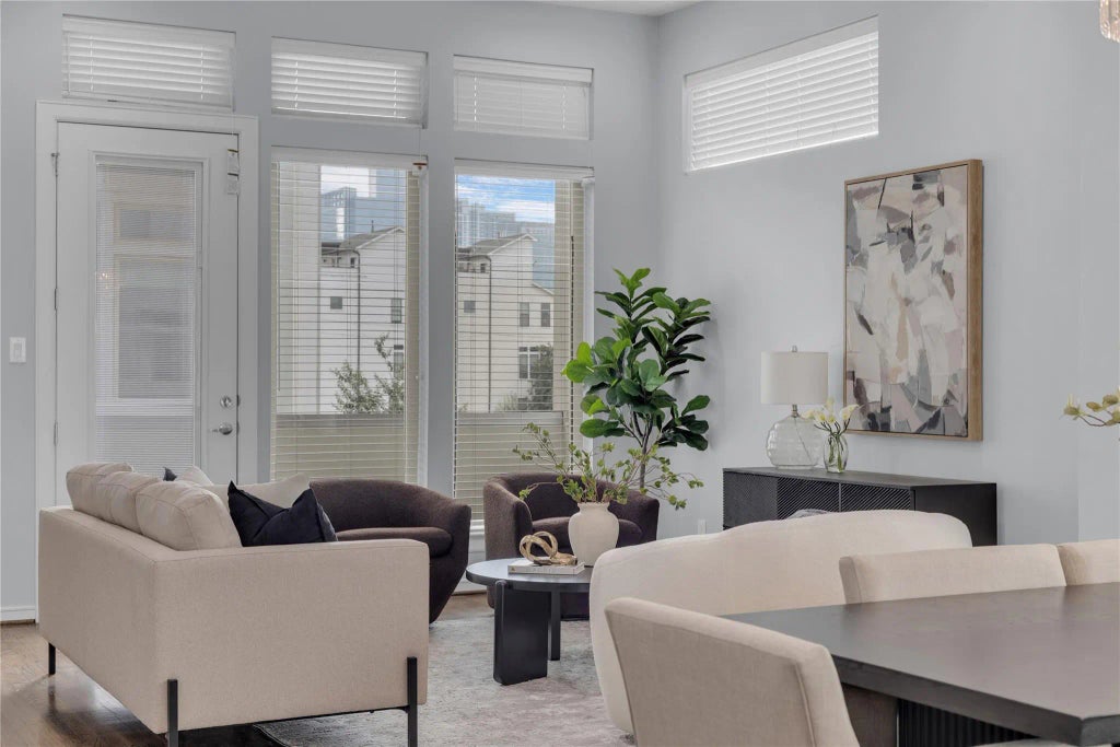 PRICED TO SELL WITH UPDATES! Welcome to 2719 Clay Street — A modern interior corner home offering added privacy and security, with green space next door and abundant natural light throughout. Just minutes from Discovery Green, Daikin Park, East River 9, GRB Convention Center, Toyota Center, and Houston’s top restaurants and bars. Inside, enjoy fresh paint, new LED lighting, a smart thermostat, and newly installed engineered hardwoods on the third floor. The kitchen features quartz countertops, stainless steel appliances, and a built-in wine fridge—ideal for entertaining. The primary bedroom showcases a great view of Houston’s skyline. Additional perks include an EV charger, a smart garage opener that alerts you when left open and can close remotely, and light landscaping for enhanced curb appeal.
