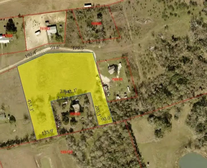 Approximately 3.8 acres to be split from larger tract. Property is unrestricted. New survey will be needed. Currently no water well or septic system. Measurements and acreage in photo are approximate and will be determined by final survey.