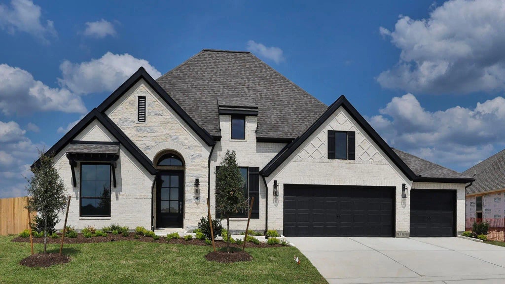 READY FOR MOVE-IN!! - Home office with French doors set entry. Media room with French doors off extended entry. Formal dining room flows into open family room with a cast stone fireplace and wall of windows. Kitchen features corner walk-in pantry and generous island with built-in seating space. Adjoining morning area features wall of windows. Primary suite includes double-door entry to primary bath with dual vanities, garden tub, separate glass-shower and two walk-in closets. Guest suite offers private bath. High ceilings and abundant closet space add to this spacious four-bedroom design. Extended covered backyard patio. Mud room off three-car garage.