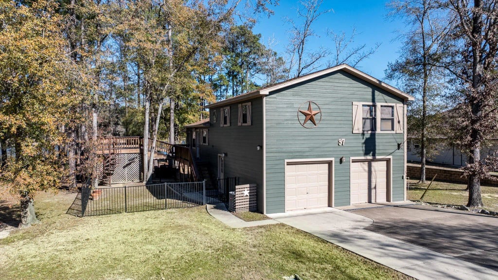 Welcome to 97 Greenway Drive in Westwood Shores near Lake Livingston in Trinity. This beautiful, rustic home is located on the shores of Westwood Lake and sits on 3 lots (approx ~ 1/3 of an acre.) With multiple decks and seating areas, this home is the perfect getaway. A spiral staircase leads you from the upstairs family room to the game room on the first floor, a second full bathroom, in-home laundry, and a garage. Loaded with storage, you'll never be at a loss for space, or build it out to add to your livable square footage. You'll find wildlife at your back door including eagles, herons, ducks, fishing, and more. Westwood Shores offers controlled access, a marina on Lake Livingston inside the community, a golf course, tennis, pickleball, a country club, a fitness center, and a community pool. Make this beautiful home your weekend retreat or live here full time. Schedule your appointment today!