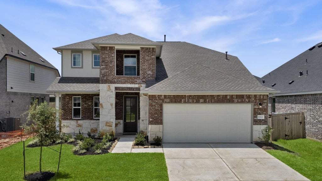 Located on a few homesites from the Model home and zoned to Waller! Experience modern living in the Hyde home plan, where elegance meets functionality across two thoughtfully designed stories. The gourmet kitchen, a culinary enthusiast's dream, boasts ample prep space and a generous walk-in pantry, ensuring convenience without sacrificing style. The primary bedroom serves as a serene retreat, highlighted sophisticated double door entry that leads into the luxurious primary bath, complete with double vanities. The secondary rooms all are large and have walkin closets. This home features the Harmony 2.0 Collection where the focal color demands attention to beautiful white cabinets and dark black hardware. Located in Dellrose and offers a variety of amenities including walking trails, playgrounds and a resort style pool.