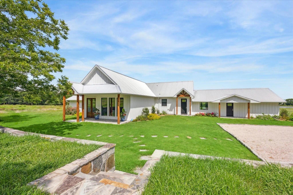 Welcome to Round Top! The perfect getaway or suitable for full time living. This house was beautifully remodeled in 2022 and sits on a scenic 4 acres in Round Top. Enjoy the country setting down a quiet road and surrounded by a pasture of cattle. The main house boasts beamed, vaulted ceilings in the spacious living room and large windows throughout that welcomes natural light and great views. The chef's kitchen is ideal for entertaining with a butler's pantry and easy access to the back porch. The striking blue and natural wood cabinets will be a talking point along with the brushed bronze accented appliances. In the main house, there are three bedrooms and two and a half baths with extensive tile work. The property also features guest quarters which includes a full kitchen, living area, two bedrooms, a bathroom, and a nook for a washer and dryer - great for guests or income producing rental!
