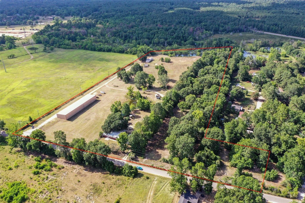 This listing is for a 5 acre property to be divided with a 1216 sqft 3/2 single-wide mobile home at the rear with covered porch which may be included or excluded. Plenty of space to expand. Please call with questions. Owner does have the capability to clear the acreage or build pad sites. The shop is 7200 sqft red iron metal building/warehouse. 3-phase power and 3 60x40 spaces inside with 14 ft tall x 16 ft wide doors. Building is 20 ft high at the peak with iron ore floors. 18 Wheeler accessible. 10 total acres available with shop for additional price with two houses, and two ponds.