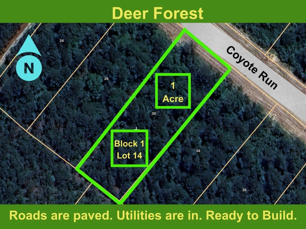 ONE ACRE IN DEER FOREST > QUIET INTERIOR ROAD > GREAT MIXTURE OF MATURE TREES > NO PIPELINE OR DRAINAGE EASEMENTS > Located on the outskirts of Willis with nearby shopping and sought after New Waverly schools. Large lot wooded community with gentle rolling hills. Peaceful privacy. You will never be crowded by neighbors. Walker County - a country lifestyle for your custom forever home. Trees, paved roads, water, most install underground propane, HIGH SPEED fiber optic internet & underground power through out. Minutes from shopping, dining, schools, hospitals, and entertainment. Low taxes - No MUD tax. High & Dry. Average elevation is 400’ above sea level.