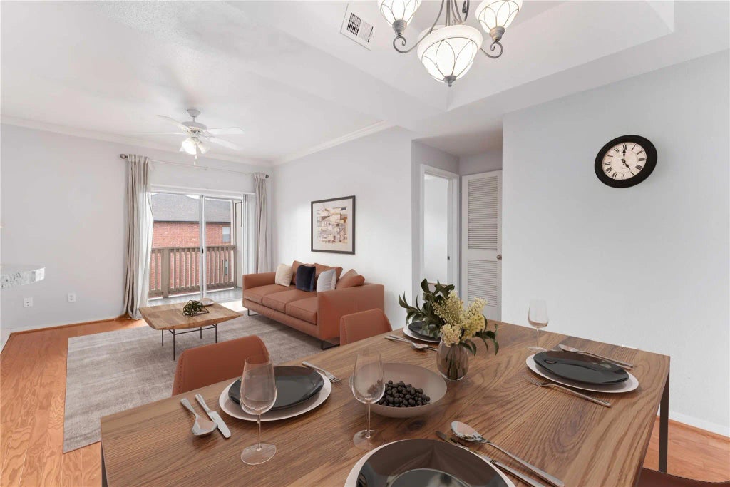 Located just minutes from shopping centers, dining, and major hospitals, this top-floor 1-bedroom, 1-bath condo in the high sought-after West University offers comfort, style, and added privacy with no condos on the sides. Step into a bright living room featuring a cozy fireplace, ideal for relaxing or entertaining. Enjoy your private balcony with a direct view of the community pool. The home also includes a dedicated dining area and a full bathroom with a tub/shower combo. Interior finishes include wood and tile flooring, combining warmth with durability. The AC was replaced in 2020 for added peace of mind. Community amenities include a pool and fitness center, all in a peaceful, well-maintained setting close to everyday conveniences.