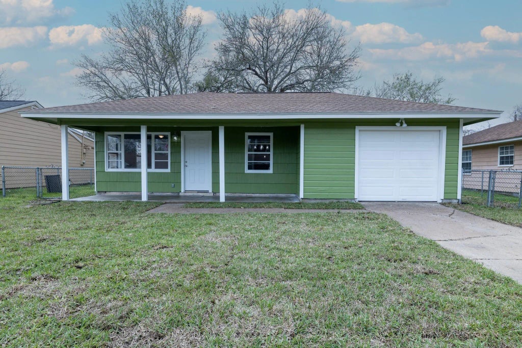 Welcome to your beautifully updated home in the heart of Baytown! This move-in ready gem blends timeless character with modern upgrades throughout. Step inside to discover brand new porcelain tile flooring, fresh carpet, and a sleek, white quartz kitchen that adds an upscale touch to everyday living. Enjoy peace of mind with a brand new HVAC system, new AC unit and drainage, hurricane-rated windows, and new gutters with a lifetime transferable warranty—offering long-term value and protection. The kitchen is as functional as it is stylish—both the stove and refrigerator stay, making your move-in effortless. Outside, the home boasts fresh sod and a leap-frog green exterior for standout curb appeal. The backyard has been newly landscaped with a built-in fire pit and mature trees that provide cool, shaded areas on hot Texas days—perfect for entertaining or unwinding. The updated bathroom features a spa-inspired walk-in shower, adding a touch of luxury to your everyday routine.