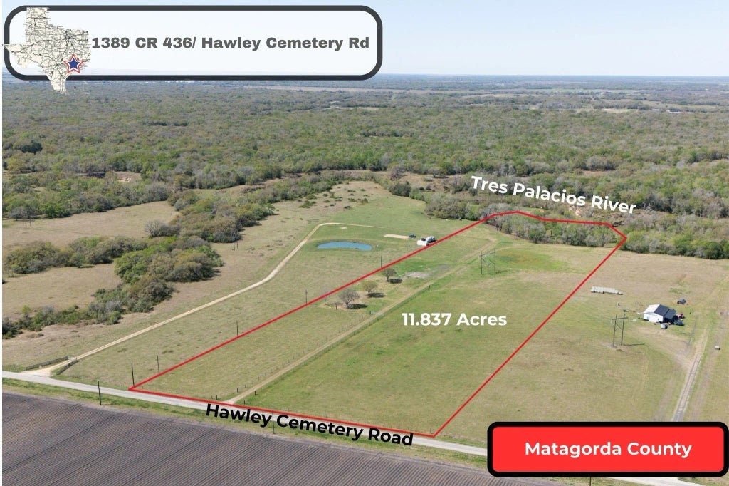 Welcome to this picture perfect UNRESTRICTED 11.837 acres on the Tres Palacios River in beautiful Matagorda County! Build your dream home or weekend getaway and enjoy gorgeous views as the tranquil river rolls gently by. The Tres Palacios River offers excellent hunting and fishing opportunities for the Outdoorsman. Fish from the pier or slide a Jon boat into the river to go after redfish, speckled trout, catfish, alligator gar and other species! With 6 RV hookups for water, sewer and electricity already installed, this property offers the possibility of earning significant rent income while you spend quality time outdoors with friends and family. With super low taxes, this property is easy to own. Don't miss all this great property has to offer! Schedule your showing today!
