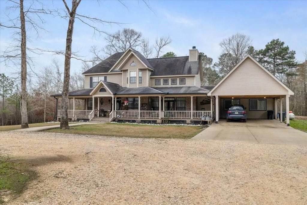 This home has over 3 acres of beautiful water with a view that will take your breath away! The home has an open concept floor plan with the office overlooking the lake. This three-bedroom 3 1/2 bath home offers over 3,000 square feet with lots of options. Great fireplace with beautiful built-ins on both sides. It offers a large game room or mother-in-law quarters. New generator that runs the whole house. A 50 x 50 insulated metal building with LED lighting and a 20 x 30 insulated building means plenty of room for a workshop, boat, tractor, and an RV. There is plenty of room (and covered parking) for it all! Outdoor pavilion offering great views, a firepit, and an outdoor visiting space. This house is definitely a DREAM HOME and a MUST SEE!