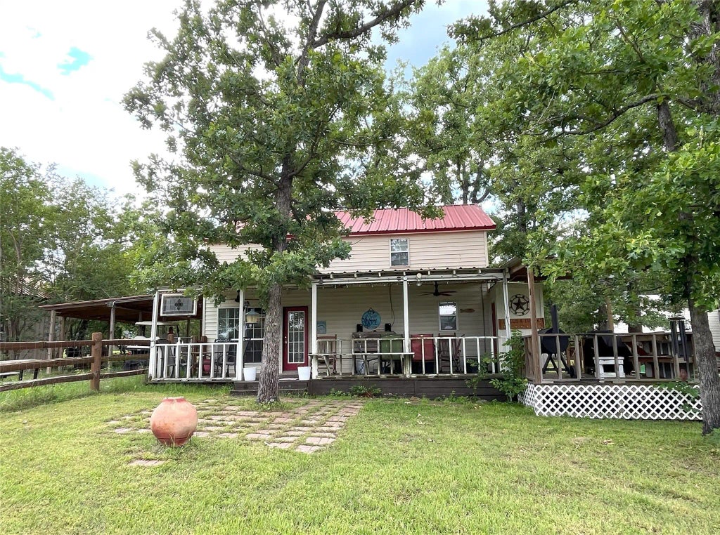 Rustic 3 -1 waterfront home with all furniture & appliances included. Lovingly updated west side 1.5 story home with reclaimed barnwood walls & concrete flooring downstairs. A large, open kitchen/dining space is great for family gatherings. The downstairs primary bedroom is nestled in the back corner for privacy. Upstairs are 2 additional bedrooms plus a loft area (currently used as sleeping space). The covered lakeside porch has been expanded to add outdoor kitchen space & outdoor shower leading to a railed fenced backyard. A storage building w/ loft includes laundry facilities. With ~100 ft of protected cove waterfront, you can walk right into the lake for close shore activities, jump on your kayak, paddle boat or paddle board! A new (2024) 70 ft walkway and one-slip boat house lets you easily launch your boat and head around the curve to the main lake or just hang out on the boat house & fish/relax while you listen & watch for the abundant wildlife in the area. Come check it out!