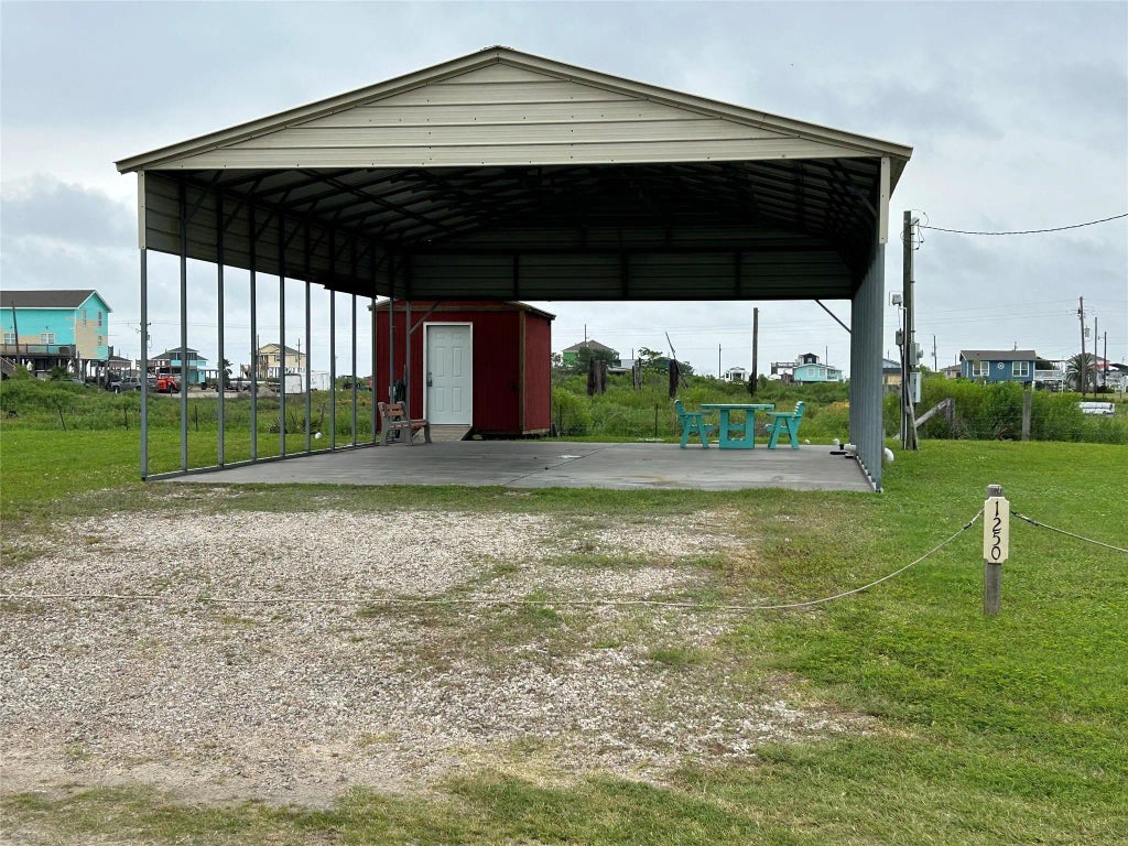 MUST SEE RV Port in the heart of Crystal Beach! Two lots included with this covered full RV 50 amp and 30 amp RV plugs, 3 sewer hookups and an approximate 28ft x 40 ft slab. Storage shed is 10ft x 12ft!