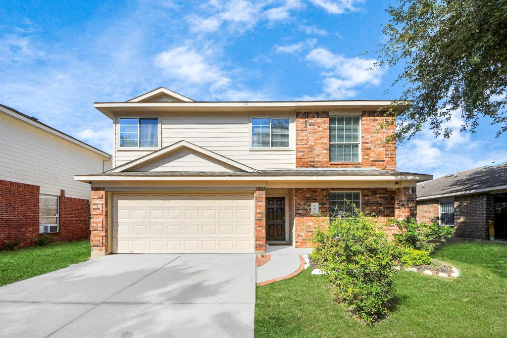 Experience comfort and spacious living in this inviting home. The expansive kitchen boasts cherry cabinets, black GE appliances, and a bright eating area overlooking the backyard. Relax by the cozy fireplace in the living room. The primary suite features two large closets and an ensuite with a deep soaking tub, standing shower, and dual vanity. Upstairs, enjoy privacy, solar screens, and a versatile game/media room perfect for big-screen TV nights. Recent 2024 upgrades include new plank flooring and carpet in the bedrooms. Additional highlights include a covered back patio for entertaining, and a walk-in laundry closet that doubles as a pantry with generous storage.