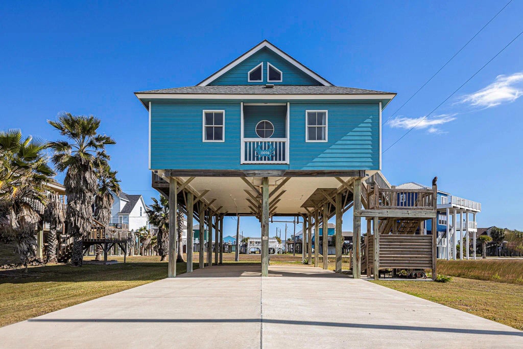 Wake up to Gulf breezes and spend evenings on your wraparound deck soaking in sunsets over San Luis Pass... This fully-furnished, income-producing beach house in Treasure Island is turn-key ready for your next adventure—or investment portfolio! Tons of updates- HVAC, Roof, Hurricane Rated Exterior Doors, Flooring, Kitchen and Bath Remodels just to name a few! The 3-Sided Elevated Deck provides views of the water from every direction. With it's Community Center Privileges and Boat Launch, this 3 BR, 2 Full Bath Beach House is located in the Highly-Coveted Ocean Subdivision of Treasure Island on San Luis Pass and is a MUST SEE. It is currently available for Lease and for Sale. Welcome to Paradise!!