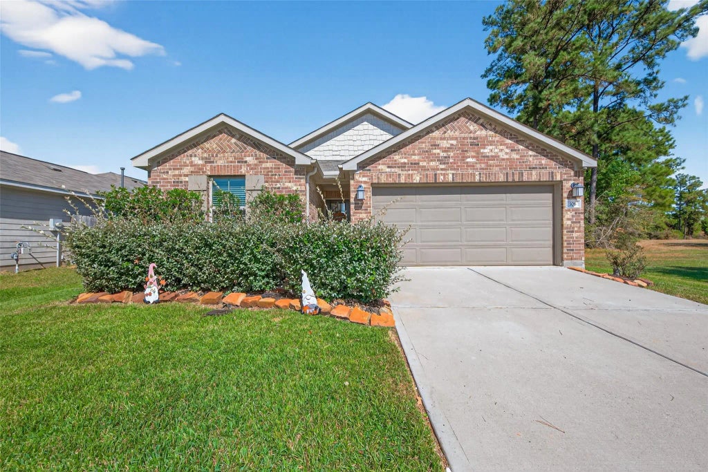 Discover this exceptional home in the highly sought-after Magnolia Ridge Community! This thoughtfully designed floor plan is perfect for any family, featuring 3 spacious bedrooms plus a versatile flex/office space. Enjoy added privacy with no back neighbors and a covered patio—ideal for entertaining or relaxing with your morning coffee. The inviting living room showcases a stunning shiplap electric fireplace that serves as the centerpiece of the space. The open-concept kitchen is a chef’s delight, offering granite countertops, upgraded tile backsplash, under-cabinet lighting, and a walk-in pantry. GREAT neighborhood walking trails and near three quiet cul-de-sacs, this home combines tranquility with convenience. Situated in the heart of Magnolia, you’ll be close to grocery stores, dining, FM 1488, and Highway 249. Don’t miss your chance to make this beautiful home yours—schedule your private tour today!