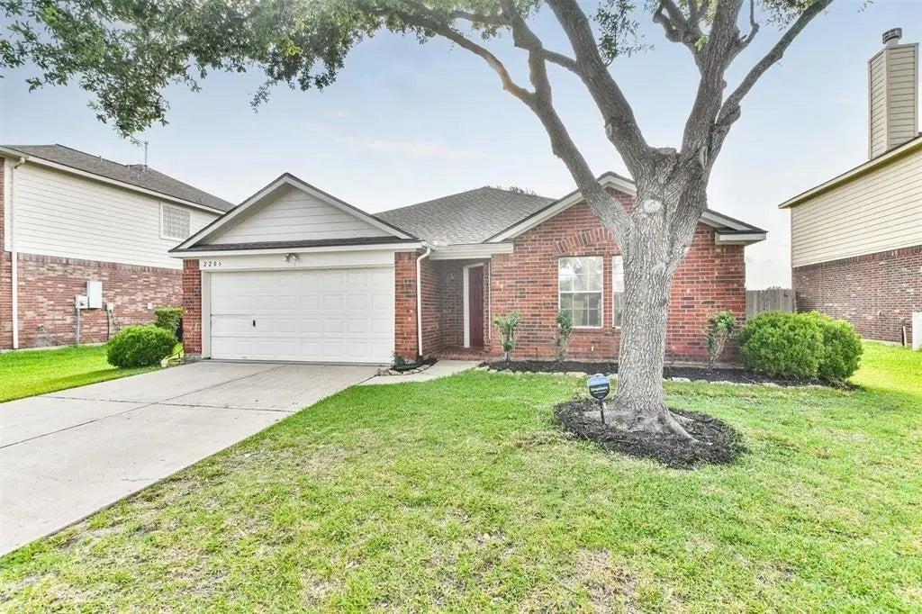 Beautifully-maintained 4-bedroom, 2 bath single-story home in the coveted South Hampton neighborhood, available mid-August! Features an open living and dining area with a fireplace and great natural light. The kitchen includes granite countertops, stainless steel appliances, a pantry, and plenty of cabinet space. Spacious bedrooms with the primary suite offering double sinks, a soaking tub, and a walk-in closet. Laminated wood/tile flooring throughout the home—no carpet. The fenced backyard includes a covered patio and a storage shed, perfect for relaxing. No back neighbor! Washer, dryer, and refrigerator are included. Recent Roof, AC, and fence. Located just minutes from Highway 288, with easy access to the Medical Center and downtown Houston, and zoned to excellent Pearland ISD schools.