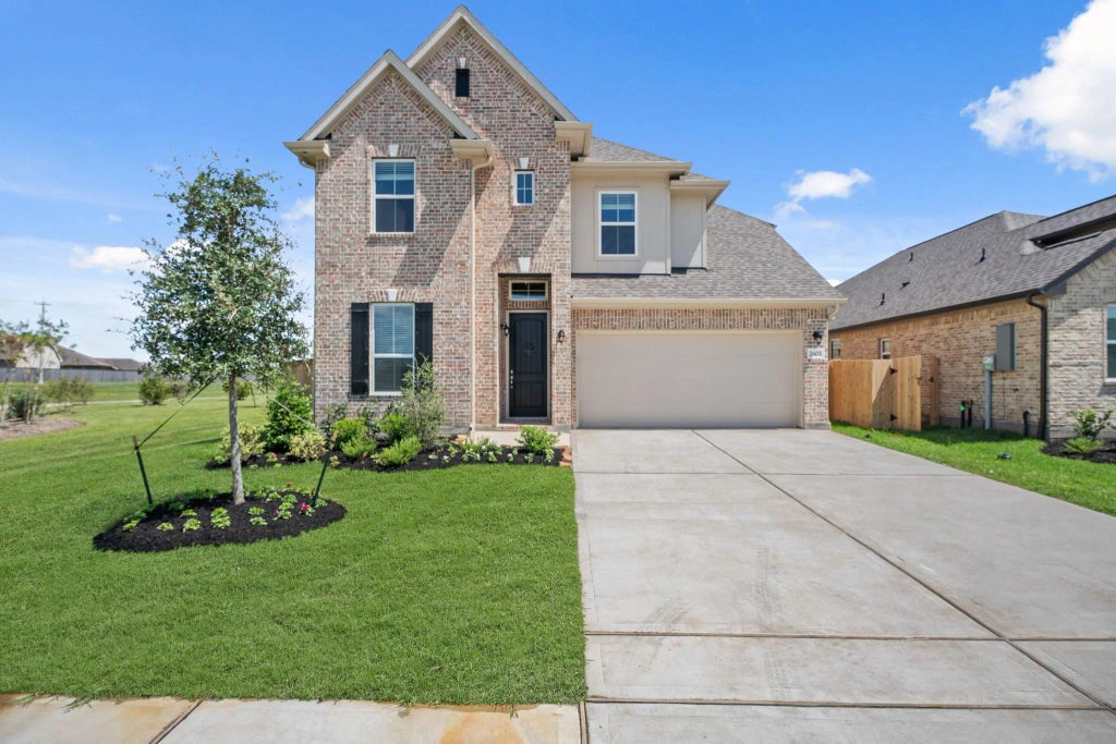 Gorgeous two-story home features 4 bedrooms, 3 baths and 2 car attached garage on an oversized lot. This home boasts a and open floor plan great for entertaining. The gourmet kitchen with white cabinets, a spacious island, and elegant quartz countertops. Enjoy the great room and a charming dining area. The private home office features French doors. The secluded owner's suite, located on the first floor, offers a luxury ensuite bath with dual sinks and soaker tub. A second bedroom is conveniently located on the first floor with a hall bath. Upstairs, discover a game room and media room. Relax outdoors under the covered patio.