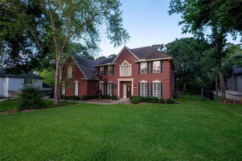 Unique neighborhood of Powder Mill Estates with peaceful, rolling hills featuring this Stunning 2 Story Red Brick Home on over 1/2 an acre with 5 bedrooms and 4 full bathrooms. Primary Bedroom provides a Spacious Getaway with a sitting area, Expansive Bathroom and huge walk-in closet of your dreams. Kitchen with Viking Range, granite countertops, Butler's pantry, double sinks with reverse osmosis and insta hot faucet. Louvered shutters on well-maintained windows throughout the home. Whole home Culligan System with carbon tank. Widened driveway with additional parking area. Lush landscaping and home garden ready to harvest. Enjoy views of nature on Screened Back Porch. Neighborhood Pool. Convenient location minutes away from Hwy 249 and 2920, with quick access to Downtown Tomball shopping, restaurants, and community events like parades and farmers' market. Come Home to this Peaceful, Family-Friendly Neighborhood!