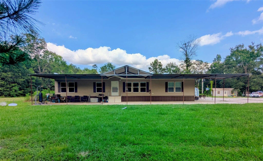 Nestled on nearly 12 acres of partly cleared land, this property offers an exceptional blend of space and functionality. Perfectly suited for those seeking a peaceful retreat with ample room to grow. The well-maintained mobile home has generous living space of 2,040 square feet. Featuring 4 bedrooms and 2 bathrooms, it ensures sufficient room for family, guests, or even a dedicated workspace. There is a concrete patio surrounding three sides of the structure giving you plenty of parking. The metal roof also extends 12 feet off the house and over the concrete patio making it ideal for gatherings, outdoor cooking and dining, etc. Beside the house is a shop with electricity; perfect for anyone needing a small workshop. The home is strategically set back more than 800 feet from the road and behind a small pond. This property also backs up to a large undeveloped tract of timber land, giving you privacy and plenty of deer for the sportsman. Call today to schedule your tour!