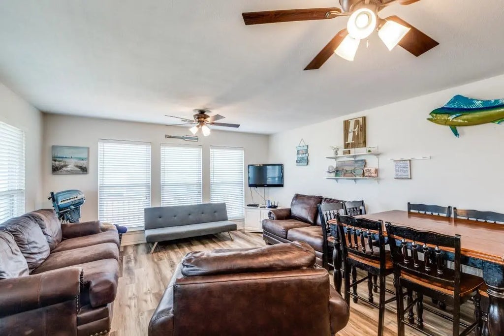 Nestled on the serene coast of Texas, this charming 1-bedroom, 1-bathroom home offers a peaceful retreat. Enjoy the spacious open-concept design, where the kitchen, dining, and living rooms flow seamlessly together, creating an inviting atmosphere perfect for entertaining or relaxing. The home features additional sleeping space downstairs, offering flexibility for guests or a quiet getaway. No need to pay for boat storage-the gargage has ample room for boats or even and RV. Set on two spacious lots, you’ll have plenty of room to unwind, entertain, or even add your own personal touches to this coastal escape. Whether you’re looking for a weekend getaway, an investment opportunity, or a peaceful coastal retreat, this property has it all.