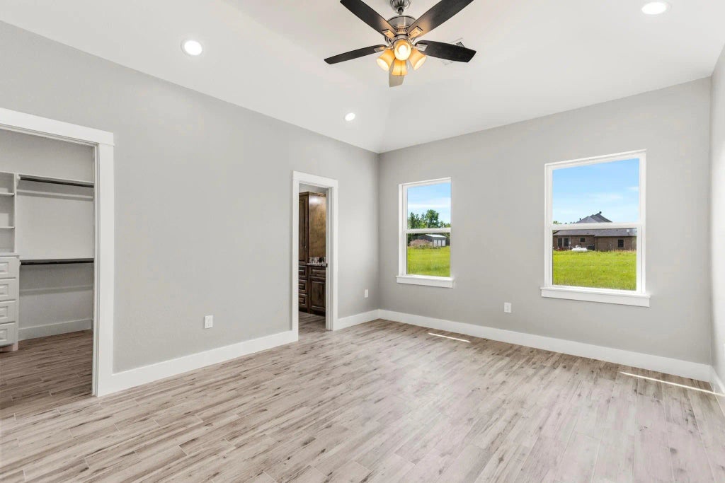 No HOA! 1.25 Acre lot home. 20 minutes from Dayton TX. When entering this beautiful home, you will notice high ceilings, large window and an open concept living room, kitchen and dining area. The living room has trace ceilings and wiring for your mounted television. The kitchen features custom cabinets, granite counter tops and a custom island. Off the kitchen you can enjoy a large pantry with built ins. Through the kitchen is the mud room and it leads to the attached carport and in-house laundry with custom built ins. Also, off the mud room is the primary bedroom. The primary bedroom offers high ceilings, primary bathroom and walk in closet. The primary bath has a stand-up shower, separate toilet area with custom built ins and granite counter tops. The primary closet features custom built in hanging and drawers. On the opposite side of the home are two bedrooms and a bathroom. Out the back door through the living area, there is a covered patio with ceiling fans and lighting.