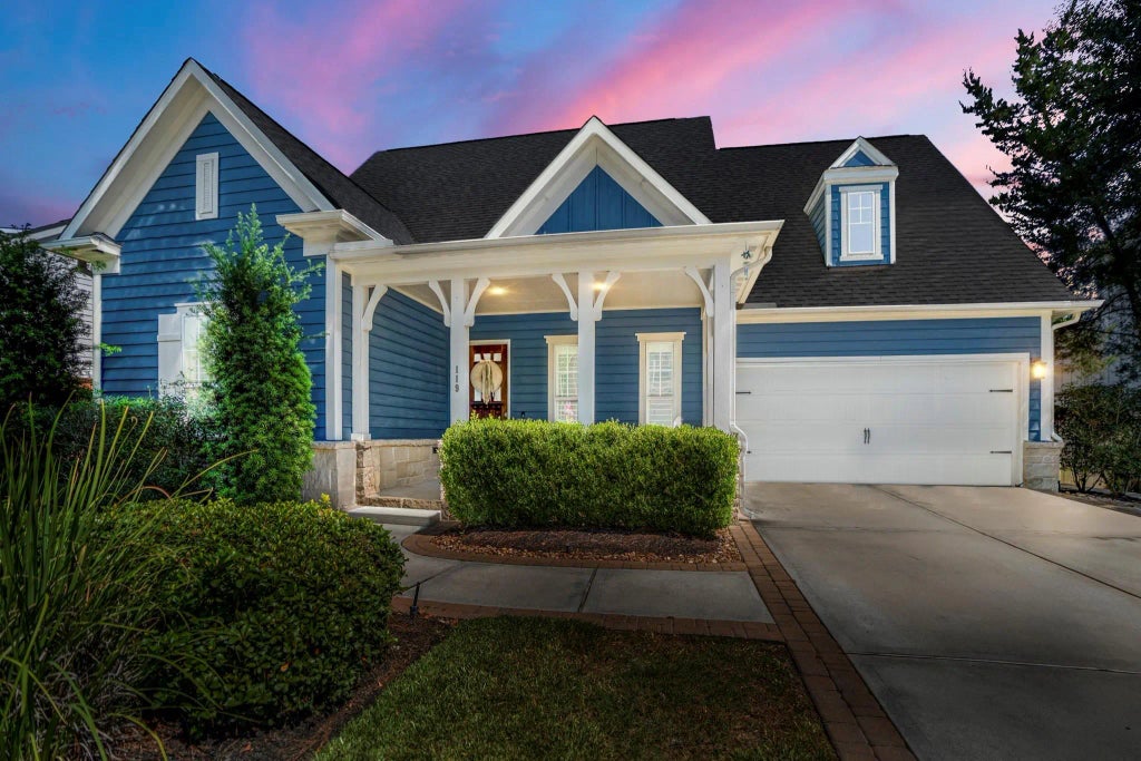 Charming 1.5 story home in Riverbend Crossing section on a cul-de-sac street with beautiful landscaping. The front porch invites you into a like new home with gleaming hardwood floors throughout. Sliding barn doors into the front study, open concept living room, modern light fixtures over Cambria quartz island & counter tops, 5-burner gas range, diagonal tile backsplash. Stacked stone gas log fireplace, LED lighting; French doors into a flex room & plantation shutter throughout. Spacious primary bedroom w/wall windows, double doors into the en-suite bath w/oversized dual head shower, dual vanities, separate soaking tub, large walk-in closet. Large game room with a half bath with massive attic storage up. Step outside into a covered patio overlooking a gorgeous sparkling pool, large sun/tanning deck, water features, gorgeous spacious backyard with mature landscaping and no back neighbors. PLUS a Water softener. Woodforest is a highly sought-after premier master planned neighborhood.