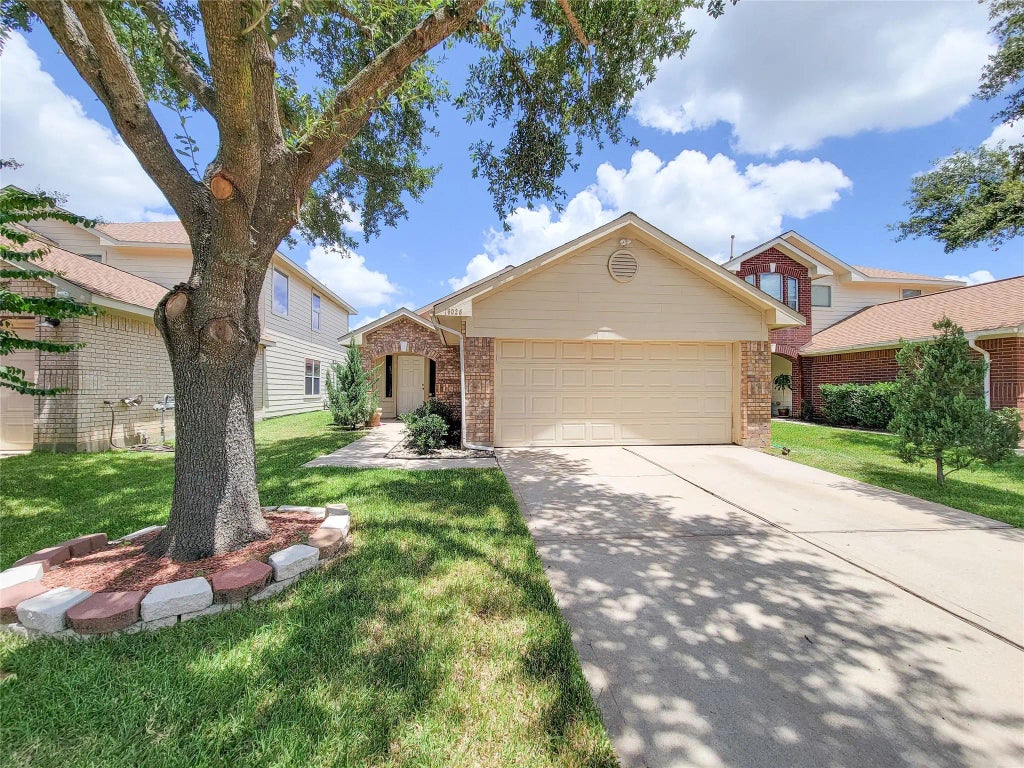 Remington Grove Cutie! This delightful 1-story, 3-bedroom, 2-bath home is move-in ready & full of upgrades. Fresh interior paint, a recently replaced roof, & HVAC system it offers both comfort & peace of mind. Bright & airy throughout, home features a functional, open-concept layout perfect for everyday living & entertaining. Welcoming Living Room flows into the open Kitchen & Dining area, leading to a cozy Family Room with a gas log fireplace, ideal for relaxing. All 3 bedrooms are placed on the opposite side of the home for added privacy. Spacious Primary Suite accommodates a king-size bed & features a walk-in closet & private bath w/ a luxurious garden tub. Smart hall bath design allows the middle bedroom to function like a 2nd suite with private access while still serving guests. Step out from the Family Room to a large concrete patio, partially shaded by sun sails, for outdoor dining or quiet mornings. Family-friendly neighborhood, with easy walk to the park & playground.