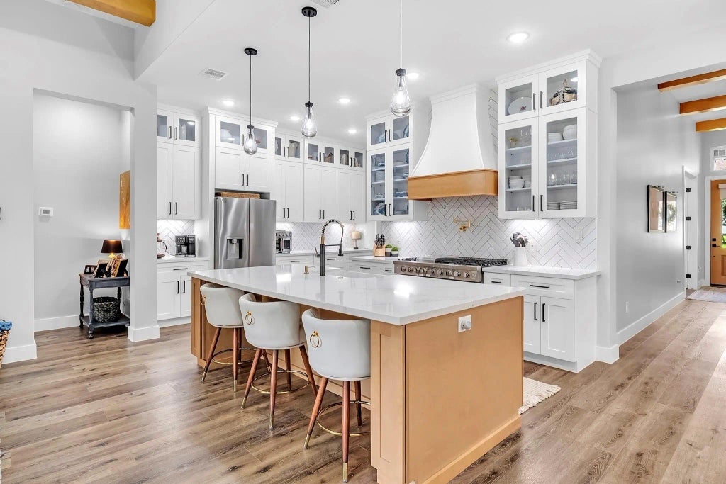 Nestled in the Lake Conroe community of Bentwater, 168 Monterrey Road W boasts 3 spacious ensuite bedrooms, plus home office, 3.5 baths and exquisite finishes throughout. With 12-foot ceilings, a gourmet kitchen with quartz countertops, bar seating, 6-burner gas stove, pot filler, and a walk in pantry, this homes kitchen is a culinary dream. Just off the kitchen area is a formal dining for entertaining or an additional flex room space. The primary bedroom is spacious with a bathroom featuring dual vanities, a soaking tub, separate shower and impressive closet space. Natural light floods the space, complementing the soft finishes throughout. Summer and Fall evenings out back grilling from your outdoor kitchen space offers additional spots for entertaining year round. Enjoy the many offered amenities of Bentwater a Country Club Community, including golf, a spa, swimming, recreation/sports facilities such as tennis, pickle ball &more. Montgomery ISD. Don't miss this one-of-a-kind gem.