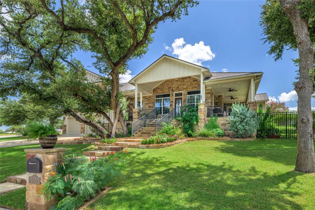 This custom-built home sits on a tree-shaded lot in The View, an exclusive gated community overlooking La Grange and the Colorado River Valley, near Monument Hill State Park. The 3-bedroom, 3.5-bath home features a stone and hardy plank exterior, standing-seam metal roof, two-car garage, and a landscaped yard with a sprinkler system. The open living area includes a chef’s kitchen, bar, dining space, and cozy den with a gas log fireplace. A home office is located off the main living area. The master bedroom features a spacious ensuite and walk-in closet, while a guest bedroom down the hall also includes an ensuite. A private third bedroom above the garage has its own ensuite and a balcony with views of La Grange. Downstairs, over 700 square feet of covered porches with stamped concrete overlook the yard and quiet street, with Monument Hill State Park nearby—a perfect spot to relax or entertain. This unique home is one you won’t want to miss!