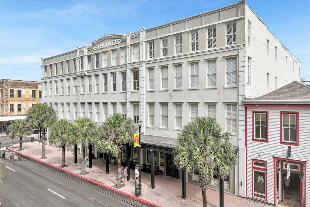 GORGEOUS DOWNTOWN CONDO. ELEGANT LOBBY AND CONFERENCE AREA. THE SPACIOUS 2-BEDROOM UNIT CONTAINS RECESSED LIGHTING, EXPOSED BRICK IN LIVING ROOM & BEDROOM, OAK FLOORING THROUGHOUT, 2 ENSUITE BATHROOMS CONTAINING FULL PORCELAIN TILE WALLS & FLOOR, SPACIOUS CLOSETS, BEAUTIFUL LIVING ROOM & DINING ROOM OVERLOOKING THE GRANITE COUNTER KITCHEN, 12' CEILINGS. MID-CENTURY FURNITURE IS NEGOTIABLE. FIRST FLOOR AMENITIES: EXERCISE ROOM, DRY SAUNA, TROPICAL, HEATED INDOOR POOL/SPA, 36 SF STORAGE UNIT. REAR SECURE DOOR LEADS TO ASSIGNED PARKING. NEW A/C IN 2008. POSTOFFICE STREET IS IDEALLY SUITED FOR A MORNING JOG OR EVENING LEISURELY STROLL TO A VARIETY OF GALVESTON'S FINEST DINING AND RETAIL, AS WELL AS WALKING DISTANCE TO BANKING, BUSINESS, THE STRAND AND CRUISE PORTS.