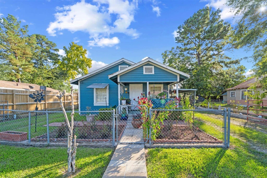 Charming single-story home featuring 3 bedrooms, 1.5 bathrooms, an attached carport, 2 driveway gates, shaded covered porch, and a spacious backyard with a storage shed! Inside, you'll find tile and wood-type flooring, ceiling fans, a living area, an updated eat-in kitchen with granite countertops, utility room with built-ins, half bath, and versatile bedroom spaces. Located with easy access to I-59/69, TX-105, and downtown Cleveland. NO HOA or MUD tax!