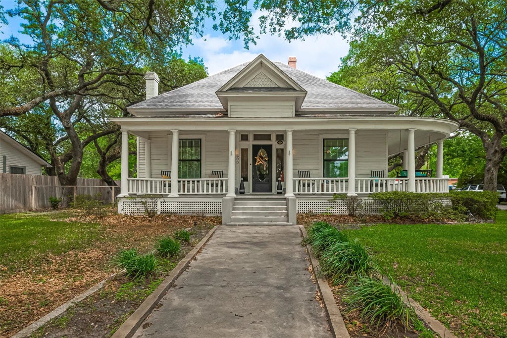 This charming cypress frame home, built in 1897, blends historic character with modern updates. A wraparound porch with classic Doric columns mirrors those inside, elegantly dividing the living and family rooms. The original hardwood floors have been beautifully restored, along with modern updates and restoration throughout the entire home. Outdoors you'll find thirteen majestic live oak trees framing the property, providing shade and beauty. The huge fenced backyard offers privacy and space to relax or entertain. Above the carport, a 400 sq. ft. studio space adds flexible living options and on the first level, another finished studio with a dry bar make for more flexible options. Don't miss out on this opportunity to own one of the prettiest homes in Eagle Lake.