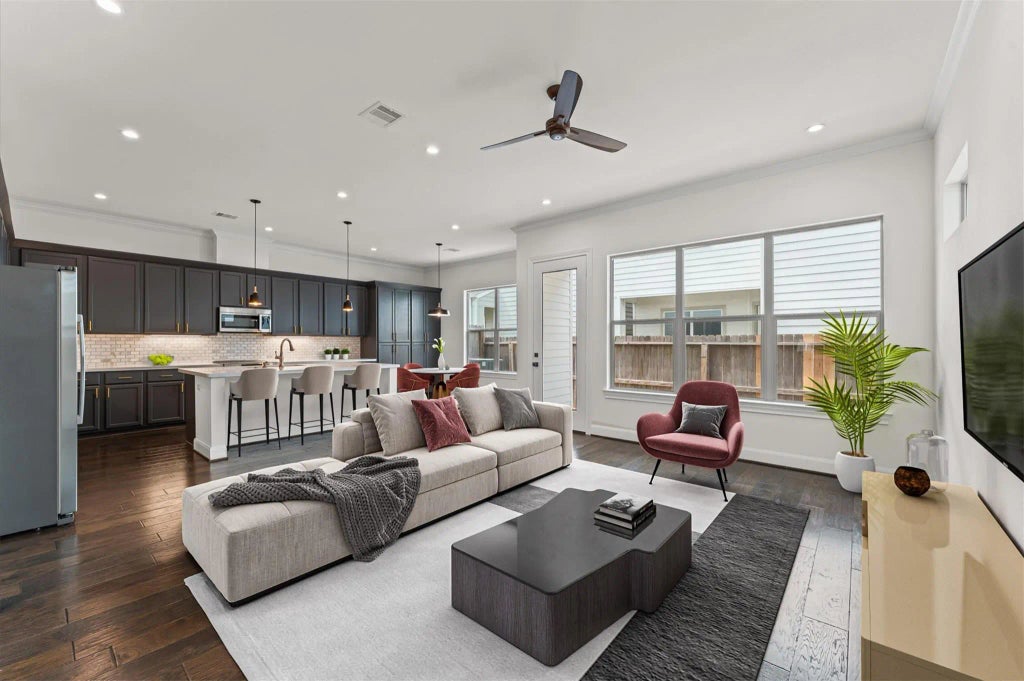 Welcome to your new home! This beautiful freestanding home is nestled in the desirable Spring Branch Area in a Gated Community. Just upgraded with brand-new carpet, beautifully refinished hardwood floors, a refresh kitchen and a newly installed shower. Two-story home with 4 bedroom, 2 1/2 Bath, Study/Office/Flex Room, large Primary Suite with spacious walking closet and an en suite bathroom featuring frameless shower, soaker tub and dual quartz countertop vanities. Elegant gourmet kitchen with stainless steel appliances, quartz countertops, custom wood cabinet, under-cabinet lighting & Breakfast bar flowing into the dining room and living room , perfect for entertaining. Wood floors flow throughout the first floor. Private back yard with covered patio.This residence combines beauty, comfort and prime location. situated a 10 minutes from City Center and Memorial City Mall indulging in amazing shopping, dining and entertainment is just moments away.