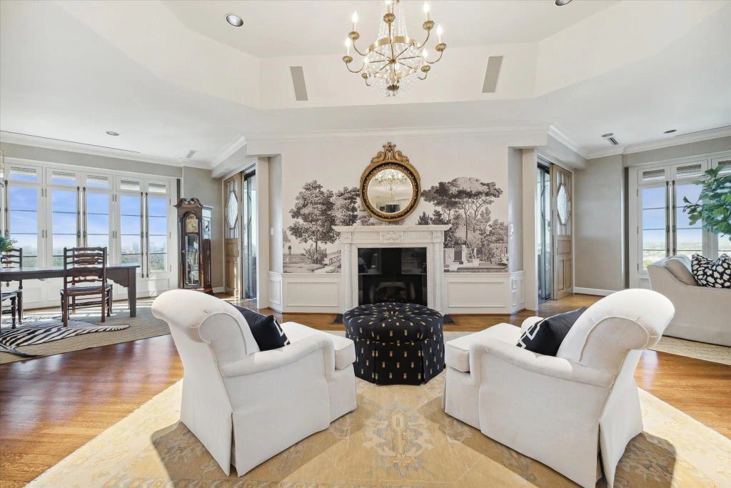 Turnkey luxury living awaits in this stunning River Oaks 3BD/3.5BA atop the revered Huntingdon condominium. This meticulously remodeled 3,745SF showplace impresses with glorious sunset and skyline views, private outdoor space, bespoke details and upscale finishes, including designer wall coverings, premium flooring and elegant millwork. The gracious entry ushers you to inviting living and dining rooms flanked by a wet bar, a stately fireplace, and an exquisite terrace for al fresco entertaining. The gourmet kitchen impresses with top-of-the-line appliances and a lovely breakfast room, while a chic powder room and stately library add convenience. Retreat to the owner’s suite to discover a gorgeous spa bath and oversized walk-in closet. Two well-appointed secondary suites, a handsome utility room, three parking spaces and a storage unit complete the thoughtful residence. Exceptional Huntingdon amenities include 24-hour concierge, valet parking, guest suites, lounges, a gym, pool and spa.