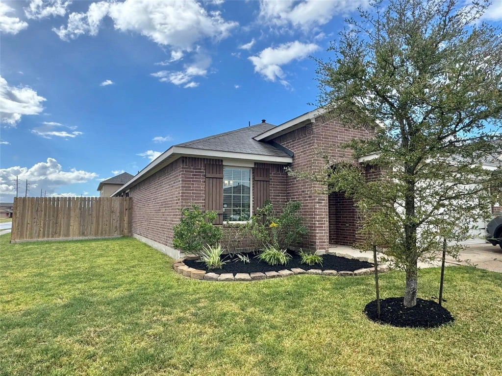This beautiful one story home is now available in the community of Rancho Verde. Come take a tour and fall in love with this 3 bedroom, 2 bath, 2 car garage home. This well maintained home offers an open concept, large kitchen with stainless steel appliances, kitchen island overlooking the living area with additional seating. Generous sized secondary bedrooms, primary bedroom is a great size fitting oversized furniture, double sinks. Laundry room can be accessed through the primary walking closet and from the hallway. Back patio and a nice corner lot yard. Great location, near I-10, Beltway 8, highway 90, and 610. Near all shopping amenities, zoned to Channelview ISD. Call for your private showing today.