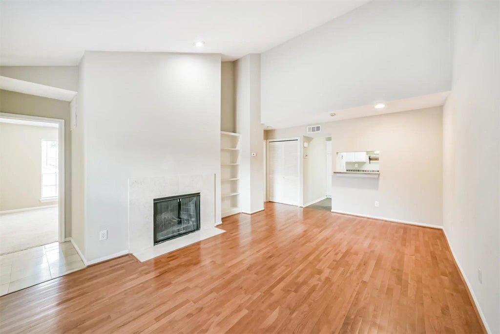 Tons of amenities in a prime location! This two-bedroom, one-bathroom condo at The Park at White Oak offers easy living, complete with gated access, use of two pools, reserved covered parking, bicycle parking, and well-maintained grounds. The entryway and living areas feature a conveniently located fireplace, real hardwood flooring, and high ceilings. The kitchen is complete with stainless-steel appliances and a breakfast bar. The two ample-sized bedrooms share a bathroom with dual sinks, and a jetted tub with a shower. In-unit laundry for added convenience. Easy access to White Oak Bayou, steps from the Heights Hike-and-Bike Trail, and plenty of local eateries. Minutes from downtown. Rent all refrigerator, washer, dryer, trash/recycling, water/sewer, basic Xfinity internet, and access to community amenities.