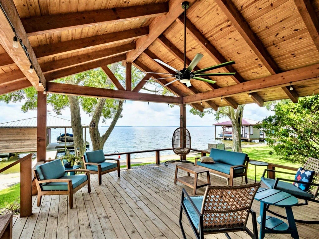 This exquisite waterfront single level lakehouse in a prime location on Lake Livingston offers stunning views and recent renovations. With 3 bedrooms, 2 baths, open concept living, and a corner fireplace, this home is in great condition. Upgrades from 2019-2021 include a new roof, flooring, windows, and paint. Enjoy the reconstructed waterfront back patio and deck, boathouse with steel bulkhead, and panoramic views of Pine Island. Boathouse upgrades include a metal roof, expanded storage, and new cradle and cables, new pier, storage shed and decking Immaculate and move-in ready, this dream lake home is perfect for weekend fun or family living in a superior area of Lake Livingston. Don't miss out on this gem!