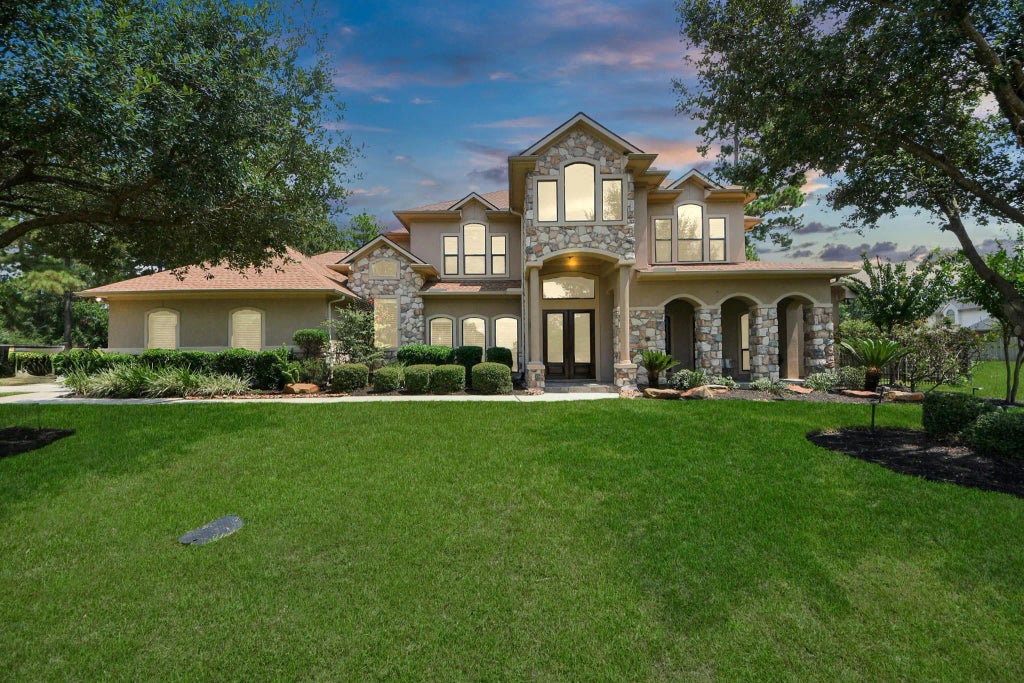 Welcome to this stunning custom executive home with 4 bedrooms, 3.5 baths, & a 3-car garage on a .44-acre cul-de-sac lot with no direct neighbors on either side. The foyer opens to an elegant dining room & flows into the spacious family room with a gas-log fireplace & custom built-in cabinets. The gourmet island kitchen features Quartz countertops, stainless appliances, custom cabinetry, & breakfast bar. A private study with French doors & tray ceiling provides a quiet retreat. The luxurious Owner’s Suite boasts a fireplace, tray ceiling, ensuite bath, & custom closet. Upstairs offers a media room with surround sound & custom built-in cabinetry with balcony access for sunrise views, plus 3 bedrooms & 2 full baths. The landscaped, fenced backyard includes a covered patio & extended deck perfect for entertaining. Conveniently located near The Woodlands, Spring, & Tomball with easy access to 99, I-45, & Hardy Toll Road. Enjoy the amenities of Augusta Pines Golf Club & Pool. Klein ISD.