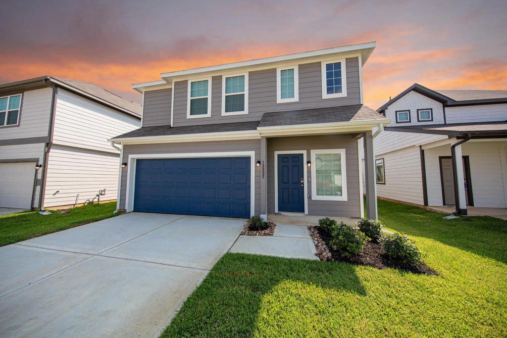 Love where you live in River's Edge in Conroe, TX! Home is zoned to the excellent Woodlands schools - Eissler Elementary School, Mitchell Intermediate School, McCullough Junior High School, and Woodlands High School. The Auburn floor plan is a spacious 2-story home with 3 bedrooms, 2.5 bathrooms, flex space, and a 2-car garage. This home has it all, including vinyl plank flooring throughout the common areas! The first floor offers the perfect entertainment space with an open kitchen, dining, and family room! The gourmet kitchen is sure to please with 42" cabinets and granite countertops! Upstairs offers a private retreat for all bedrooms! Retreat to the Owner's Suite featuring double sinks, a sizable shower, and walk-in closet! Enjoy the great outdoors with full sod, sprinkler system, and a covered patio! Don't miss your opportunity to call River's Edge home, schedule a visit today!