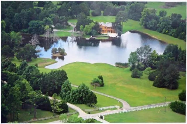 Stunning Limestone & Wood Home on Private Bass Lake! Arrive in style on the ½-mile concrete drive leading to this spectacular custom residence, where quality craftsmanship meets timeless design. The open living area boasts a dramatic floor-to-ceiling limestone fireplace, wet bar, soaring ceilings, and walls of windows that fill the home with natural light while framing serene views from nearly every room. Step outside to an impressive 1,800 sq. ft. deck that extends over 3 acres of natural beauty and overlooks a private, 25-foot-deep, crystal-clear bass lake—professionally designed by a four-time Bass Master Champion. Perfect for entertaining or peaceful reflection, this one-of-a-kind setting brings the outdoors in. Additional highlights include a spacious 3–4 car garage with workshop space, providing plenty of room for vehicles, hobbies, and storage. Property combines elegance, comfort, and recreation in an unparalleled retreat. Furniture can be included along with dishware etc.