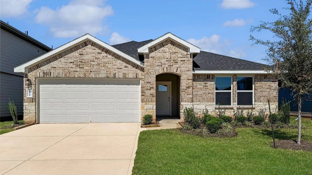 Welcome to D.R. Horton's Kingston Floorplan located in the beautiful community of Tamarron! With just over 2000 sqft, this 4 bedroom 2 bathroom home offers lots of unique features. The primary bedroom boasts a gorgeous sloped ceiling, as well as a spacious primary bath. The open concept living, dining, and kitchen area offers a kitchen island/ breakfast bar, waterfall granite countertops, and stainless steel appliances perfect for everyday use. The spacious living room leads directly to the back yard and covered patio, great for entertaining! Silversmith LVP flooring can be seen throughout the home. The exterior displays a beautiful traditional brick and stone face and 2 car garage. Tamarron is the place to be, with great community amenities and great location in the growing city of Fulshear! *Images and 3D tour are for illustration only and options may vary from home as built.