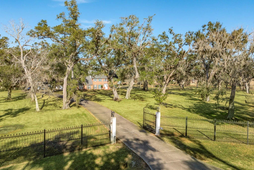 Presenting 1907 Oak Island Dr. This rare find seamlessly combines tranquility and convenience. Upon arrival, a grand entrance leads the way to your private retreat, where mature trees enhance the beauty of this property. This French-inspired residence offers 3,155 square feet of living space, featuring timeless elegance and undeniable charm. Boasting 4 bedrooms, 2.5 bathrooms, a formal dining, a flex room, and over sized living room with a wood burning fireplace. Head out back and hang out at your salt water swimming pool during the summer days. With horses allowed and no history of flooding, this waterfront property offers ideal opportunities for fishing and paddleboarding on a picturesque day. Elevation certificate on file and additional slab with water and power for Rv Hookups or secondary living. Total Tax Rate 1.25%. LOW TAXES - Enjoy living outside city limits with NO restrictions.